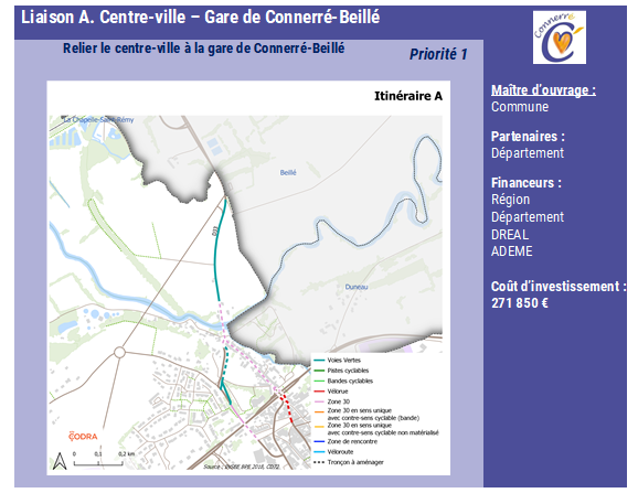 La Mairie de Connerré porte une forte ambition de développement de la mobilité active. Elle a donc fait appel à l’expertise de Codra pour l’élaboration de son Schéma Directeur Modes Actifs. Les objectifs de cette démarche étaient de sécuriser les déplacements vers les établissements scolaires et sportifs, vers la gare (dans la commune voisine), ainsi que d’apaiser la circulation dans le centre-ville.