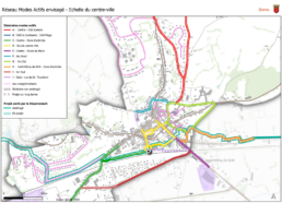 Dans ce contexte, la Ville a décidé d’élaborer son Schéma Modes Actifs, afin de développer la pratique du vélo et de la marche, pour les déplacements utilitaires et touristiques. A travers une démarche participative, mobilisant élus locaux, représentants du Département, des communes voisines, des entreprises, de la société civile…, plusieurs solutions ont été imaginées. Le réseau cyclable retenu assure une liaison entre la gare et le centre-ville, ainsi que vers les équipements publics et les destinations touristiques. Il s’appuie sur une voie verte portée par le Département.