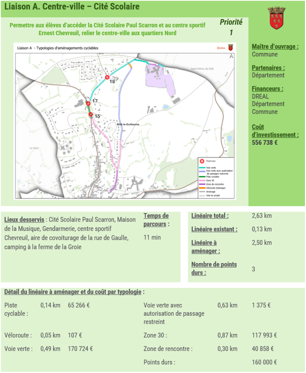Située dans la Sarthe, Sillé-le-Guillaume représente un pôle urbain important à l’échelle du Pays du Mans, avec une gare, une zone d’activités, un centre hospitalier, une cité scolaire, ainsi que son château et son centre de loisirs. Elle est traversée par une route structurante, supportant un trafic de transit et pénalisant les déplacements des modes actifs. De plus, le relief entre le centre-ville et le nord du territoire représente un frein au développement du vélo.