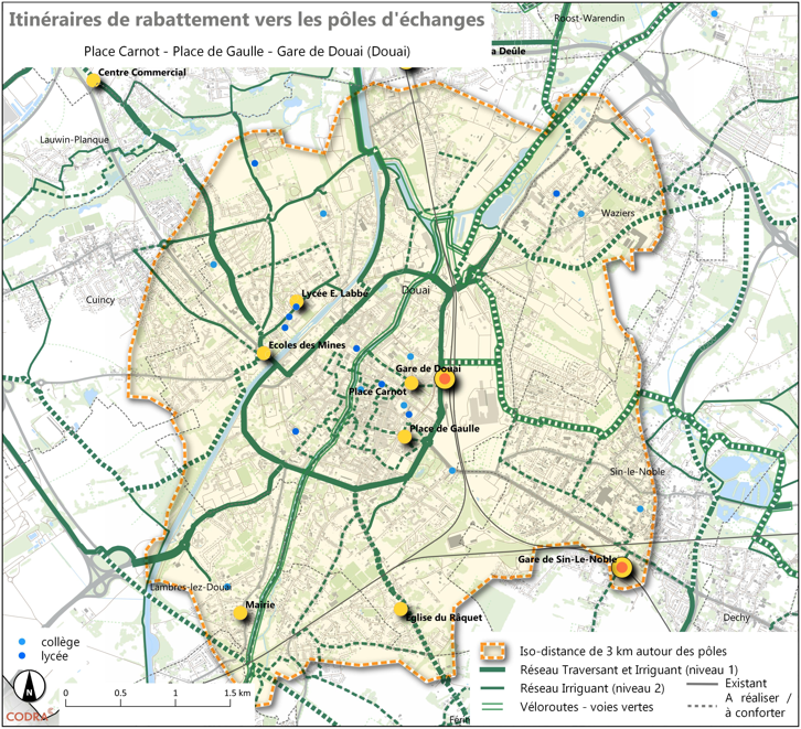 Ce travail a conduit à l’identification des liaisons à créer ou à renforcer sur le territoire, dans le cadre d’un réseau hiérarchisé, ainsi qu’à des préconisations sur les mesures de promotion de la pratique des modes actifs.