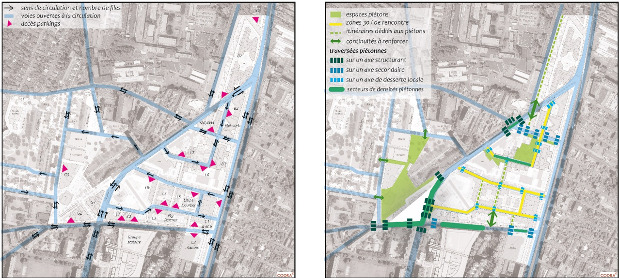 L’écoquartier Victor Hugo à Bagneux prévoit une programmation mixte autour du futur pôle d’échanges Lucie Aubrac (correspondance entre 2 lignes de métro 4 et 15 Grand Paris Express). A l’horizon 2030, le quartier accueillera 4 800 habitants et 6 400 emplois supplémentaires. CODRA avait réalisé une première étude sur les déplacements entre 2011 et 2013. Depuis, la programmation ainsi que la composition urbaine du quartier ont été revus. Alors que la ZAC est désormais dans une phase opérationnelle, cette actualisation était nécessaire pour dimensionner les aménagements de voirie et d’espaces publics. Les estimations de trafic ont tenu compte de l’évolution récente des pratiques de déplacements. Une réflexion approfondie a été menée sur les évolutions à venir, qu’elles soient liées au projet ou à d’autres facteurs. Des zooms ont été réalisés sur certains secteurs stratégiques.